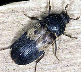 An infestation of larder and hide beetles is usually identified by their hairy larval skins which are clearly visible. The larvae often occur in large numbers and destroy hides and leather by eating away at them from the inside, leaving them shabby and full of holes. Woollen textiles can also be infested. Damage can also occur in bales of tobacco, cotton reels, cork and asbestos when the larvae bore into them to pupate.