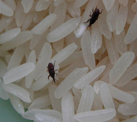 A cereal grain infested with the rice beetle looks completely normal from the outside. The larvae eat up the grains, leaving behind the empty shells. Infested cereals become warm and soon become musty, and subsequent pests can also cause additional losses.